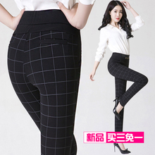【新品】打底裤外穿纯棉松紧腰中老年女裤高腰格子条纹妈妈裤大码