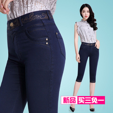 2017新款七分裤牛仔裤女妈妈高腰中裤中年7分女裤春夏季短裤大码