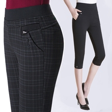 薄款7七分打底裤外穿女中年九分夏季妈妈格子短裤女裤中老年裤子