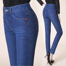 2017新款春夏季牛仔裤女九分裤高腰妈妈裤子中年女裤妇女小脚胖mm