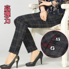 春秋款中老年女裤妈妈装加绒加厚长裤子中年外穿打底裤小脚格子裤