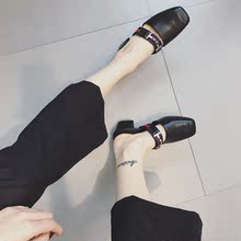 2017韩版春夏新款软面皮舒适复古奶奶鞋粗跟方头低跟鞋浅口女单鞋