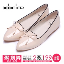 茜比尔2017夏季新款绑带单鞋女平跟浅口百搭尖头蝴蝶结平底鞋女潮