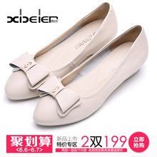 茜比尔春季新款平底单鞋女防滑软底孕妇瓢鞋圆头浅口蝴蝶结妈妈鞋