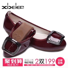 茜比尔2017夏季新款单鞋女浅口尖头软底孕妇鞋平底方扣百搭瓢鞋女