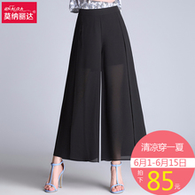 阔腿裤女夏柔美雪纺裙裤2017夏季新款开叉九分裤高腰长裤子宽腿裤