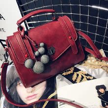 毛球复古小方包斜挎包女包2016秋冬新款日韩单肩包简约百搭手提包