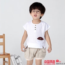 中小童装棉麻短袖t恤 婴幼儿童宝宝上衣亚麻半袖小衫夏装空调衫潮
