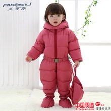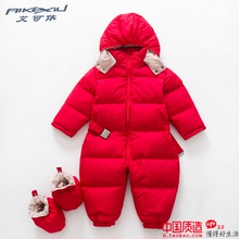 艾可休 冬季儿童羽绒连体服 宝宝爬服婴幼儿外出加厚哈衣男童女童