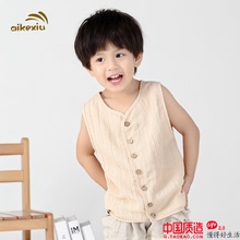 艾可休儿童t恤女夏季童装无袖薄款马甲2017新款男宝宝短t棉麻上衣