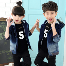 儿童牛仔外套春款童装小中童开衫男童棒球服女童连帽上衣宝宝夹克