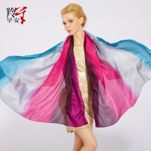 羚羊早安 送礼桑蚕丝丝巾女士渐变长巾围巾披肩