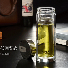 富光双层保温玻璃杯透明水杯子带盖便携密封FB1013-320正品杯子