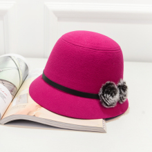 韩版英伦秋冬季女士礼帽双毛球毛呢毡帽妈妈帽时尚MM女帽子小礼帽