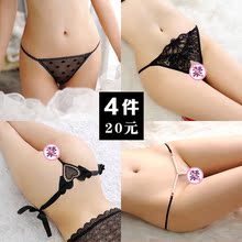4条装 性感女士丁字裤透明蕾丝花边纯色内裤 低腰诱惑透视T裤