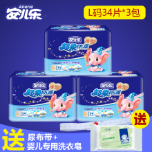 安儿乐超柔防漏婴儿纸尿片L34*3 宝宝尿不湿安尔乐尿片 干爽透气