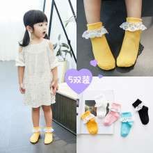 儿童丝袜纯棉女童蕾丝中筒袜春夏薄女童堆堆袜3-5-7岁女童长筒袜