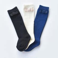 女童蝴蝶结中筒袜 纯棉 儿童高筒袜 护膝袜子 中筒过膝袜春秋长袜