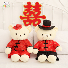 婚车熊压床娃娃一对结婚礼物中式婚礼娃娃泰迪熊情侣公仔婚纱熊