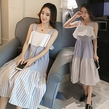吊带连衣裙女夏2017新款修身显瘦一字肩小清新棉麻a字裙百搭长裙