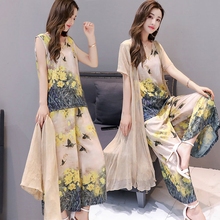 阔腿裤套装女2017春夏新款韩版碎花雪纺气质显瘦开衫九分裤三件套