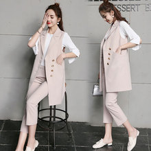 女装春装2017新款潮套装女名媛时尚气质显瘦西装马甲九分裤两件套
