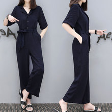 连体裤女夏装新款短袖修身条纹高腰显瘦休闲裤连体衣阔腿裤长裤潮