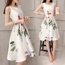 连衣裙夏季2017新款女学生时尚韩版修身显瘦甜美印花中长款a型群
