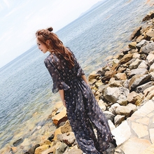 连体裤女夏2017新款露肩碎花雪纺波西米亚修身高腰显瘦阔腿裤长裤