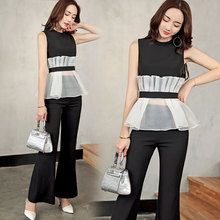 套装夏女2017夏季新款圆领无袖修身韩版气质显瘦九分阔腿裤两件套