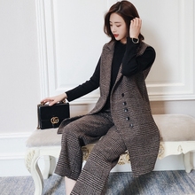 女装春装2017新款潮套装女职业韩版气质西装马甲九分阔腿裤三件套