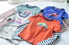 17春季新款童装 汽车款男童纯棉长袖汽车T恤 假两件上衣 薄款