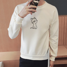 泰芝郎秋季衣服男士t恤男长袖体恤圆领宽松简约卫衣印花蝙蝠衫潮