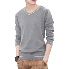 春季男士套头V领毛衣针织衫韩版修身纯棉拼接时尚毛衫线衫薄条纹
