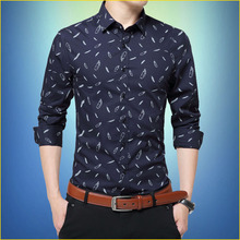 泰芝郎春季新款男士长袖衬衫韩版修身休闲免烫印花碎花男装衬衣潮