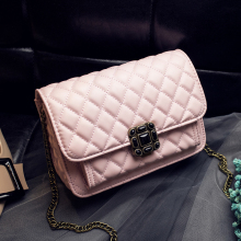 新款经典气质小香风菱格链条包 百搭潮女宝石扣单肩斜跨小包