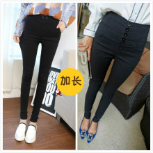 2017新春季黑色个性六排扣高腰外穿打底小脚休闲铅笔加长175女裤