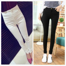 2017春秋新款女装韩版瘦身显瘦单排扣高腰打底铅笔小脚长裤子实拍