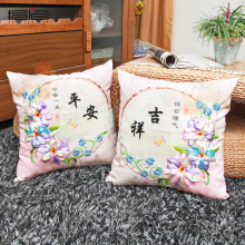 指间新款手工刺绣抱枕客厅卧室餐厅情侣汽车枕丝带绣印花靠垫枕套