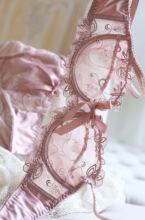 法国大牌 精致刺绣透明超薄蕾丝文胸套装文胸