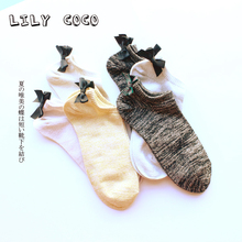 金银丝亮丝棉质彩色低帮船袜复古蝴蝶结隐形短袜子日韩系学院女袜