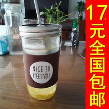韩国创意梅森瓶成人吸管杯大容量玻璃杯带盖公鸡杯夏季冷饮果汁杯