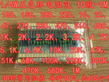 【亏本大甩卖】1/4W五色环电阻包 10欧-1M 30种常用阻值每种20个