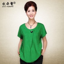 水卉曼中老年女装夏装短袖t恤 妈妈装夏装上衣 中年女装打底衫