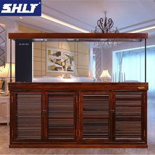 泗海龙源实木鱼缸大型超白龙鱼缸水族箱客厅底过滤鱼缸中式百叶门