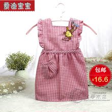 爱迪宝宝新款韩版无袖反穿衣儿童花边格子围裙罩衣婴儿防水衣包邮