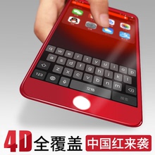 苹果7钢化膜全屏红色防指纹4D iphone7plus钢化膜4D全覆盖7p彩膜