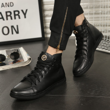 韩版时尚短靴懒人高帮鞋真皮透气板鞋潮流男鞋马丁鞋个性男士靴子