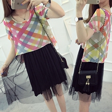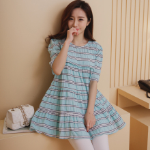孕妇装春装上衣韩版孕妇春夏短袖蕾丝时尚宽松孕妇连衣裙条纹打底