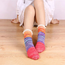 新品!秋冬季彩色民族风粗线袜潮女袜复古堆堆袜森系长袜中筒袜子